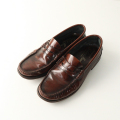 ソールの擦れ、履きジワが見受けられます。アンティークような深い色合いで色ムラは元々でございます。