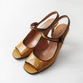 右足表面に黒い汚れ、ヒール付け根の剥がれ、ストラップの留め具に剥がれが見受けられます。 USED商品になりますので少々使用感はございますが、着用に問題無いと思われます。
